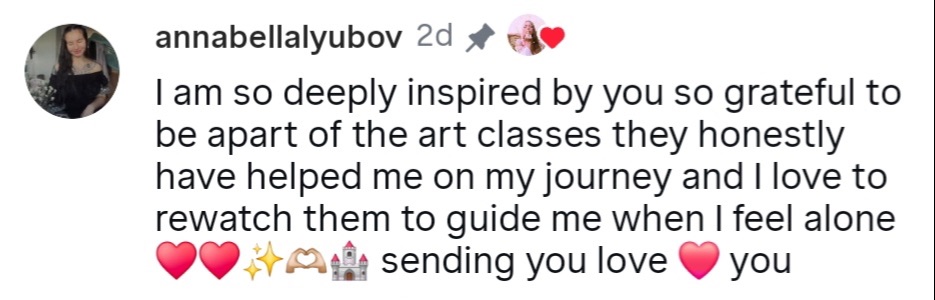 While theory provides structure, consistent practice is what truly defines an artist. There will be fun challenges or “manifestation enhancing assignments” filled with exercises designed to spark inspiration and help you grow. I’ll share tips and techniques to make your work stand out, adding unique elements that transform each piece into something remarkable.
