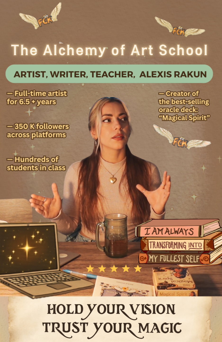 If you know me as an artist, you’ve experienced the amount of passion, magic and innovation I put into all of my creations. Whether through my world-wide bestselling oracle deck, my yearly guided planner (that is now many people’s household tradition) or my viral illustrations — this masterclass is no different.